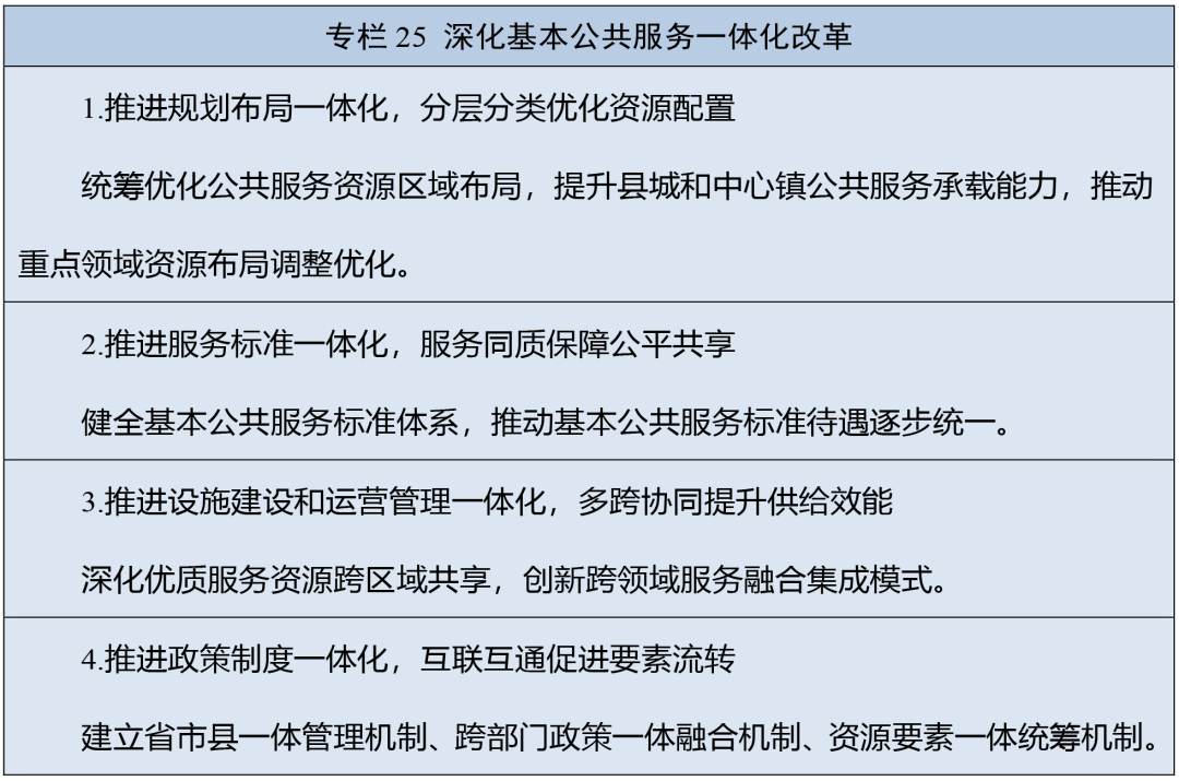 ——城乡一体融合高质量发展实现重大突破,全体人民共享高品质幸福生活更加可感可及。杭甬双城综合能级和综合辐射带动作用显著提升,山区海岛县内生发展动力更加强劲,县城综合承载能力进一步提升,和美乡村实现省域基本全覆盖;高质量充分就业取得新进展,居民收入增长与GDP增长同步,居民人均可支配收入达9万元左右,劳动报酬提高与劳动生产率提高同步,以中等收入群体为主体的橄榄型结构形成;社会保障制度更加优化更可持续,公共服务更加均衡普惠、共享可及,成为心生向往、情感归属、梦想成真的幸福家园。